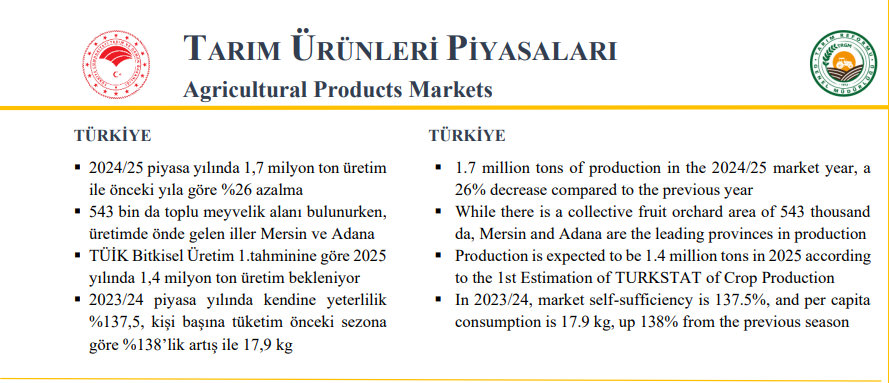 Tarım ve Orman Bakanlığı’nın Temmuz 2025 tarihli "Tarım Ürünleri Piyasaları: Limon" raporunda yer alan veriler, ithalat kararının gerekliliğini sorgulatıyor: