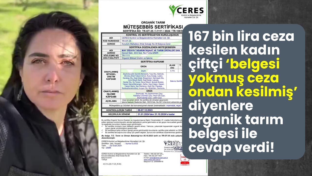 Bunun üzerine sosyal medya hesabından ceza kesilen ürününe yönelik organik sertifika belgesini yayınlayan Duygu Özerson Elakdar, “Müteşebbis Sertifikası (Master Sertifika), organik üretimin esas belgesidir ve ürün sertifikası yalnızca buna dayanarak düzenlenir” dedi.